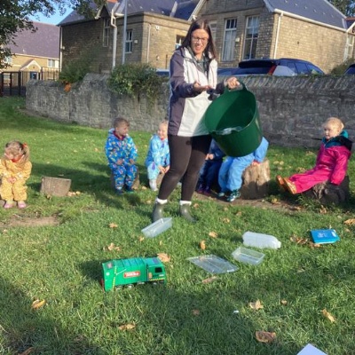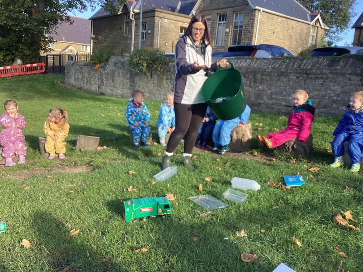 On our Welly Fun session, Mrs Laws was very clumsy and she dropped some rubbish! The children worked together to sort the litter and recycle it into two groups, ‘plastics’ and ‘papers’.