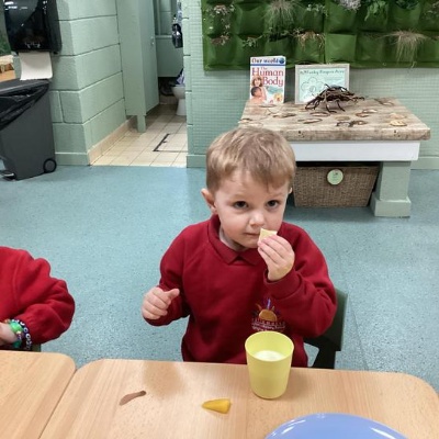 We tasted a selection of yellow foods at snack time!
