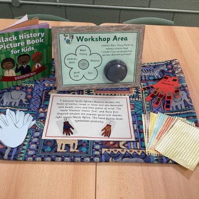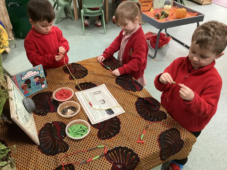 At the Funky Fingers table we made Kwanzaa necklaces by threading important colours onto a string!