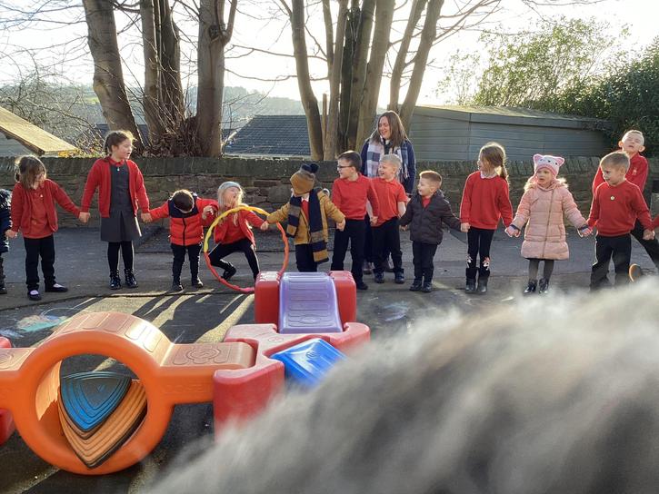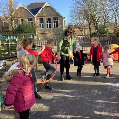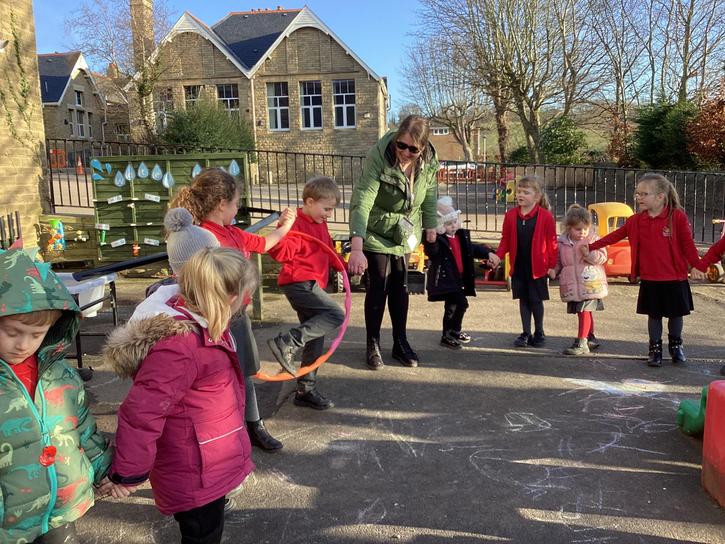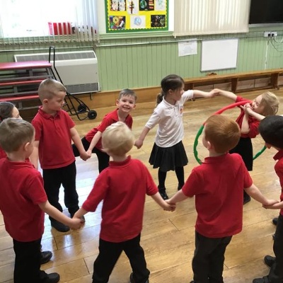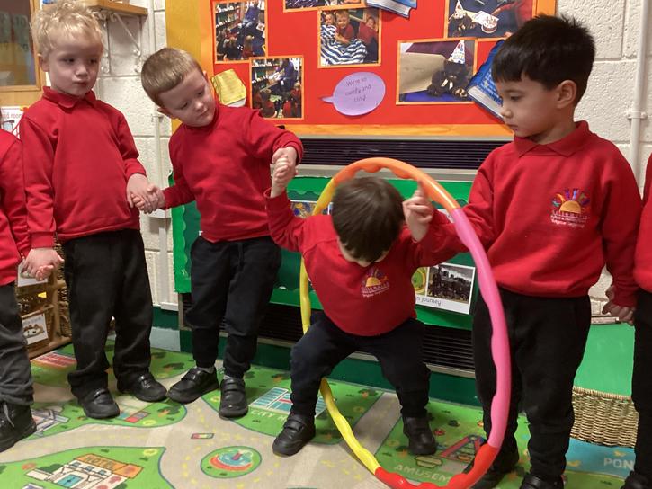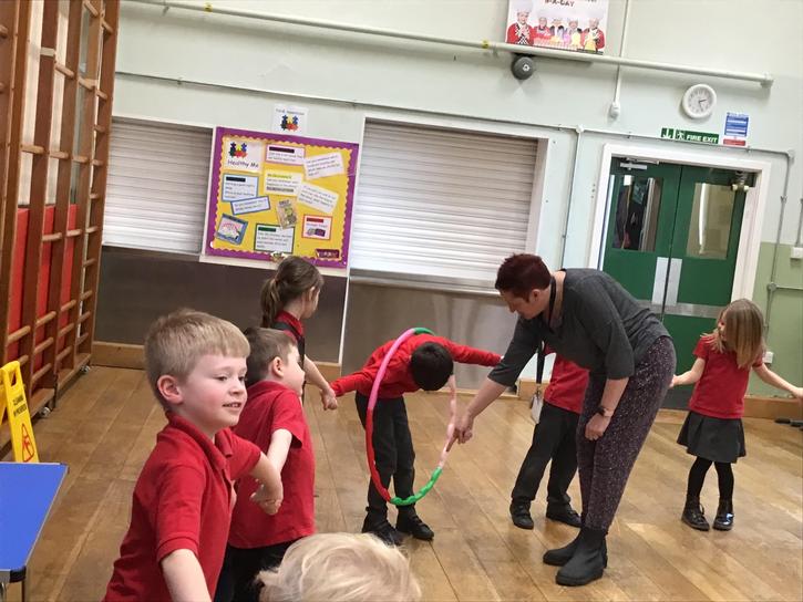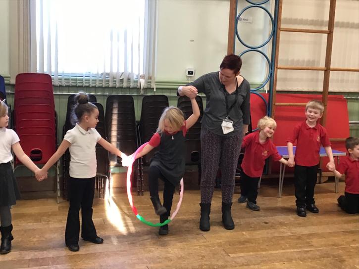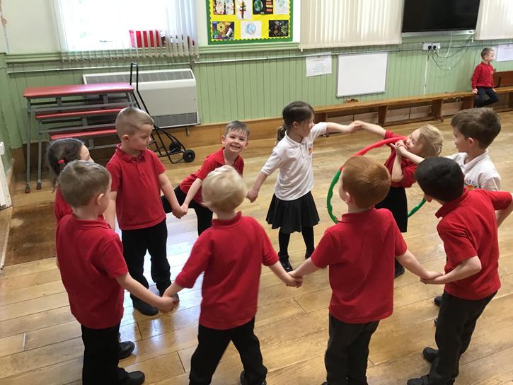We made a circle and all held hands to make a connection. In the circle was a hula hoop. We had to pass the hoop around without letting go of our hands. We had to work with the people who were next to us. Some children were really good at this and some children were good at working as a team.