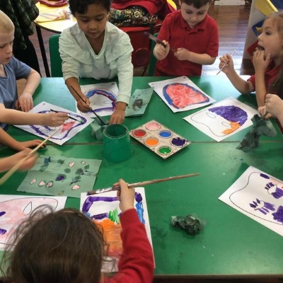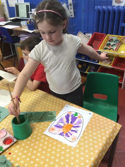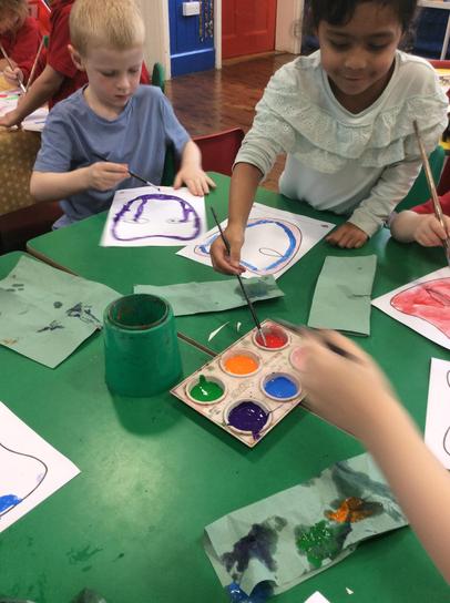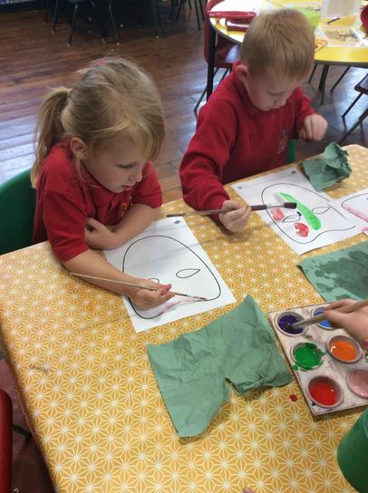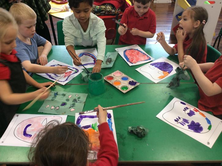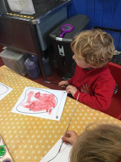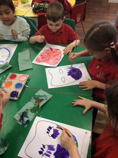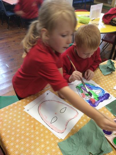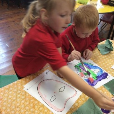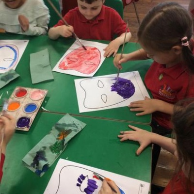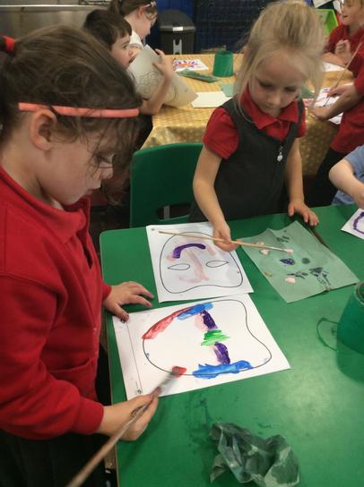 This week we have been making masks. We thought about what we wanted our masks to look like, chose the colours we needed and painted it. After it had dried, we cut it out and added extras such as feathers, sequins, etc.