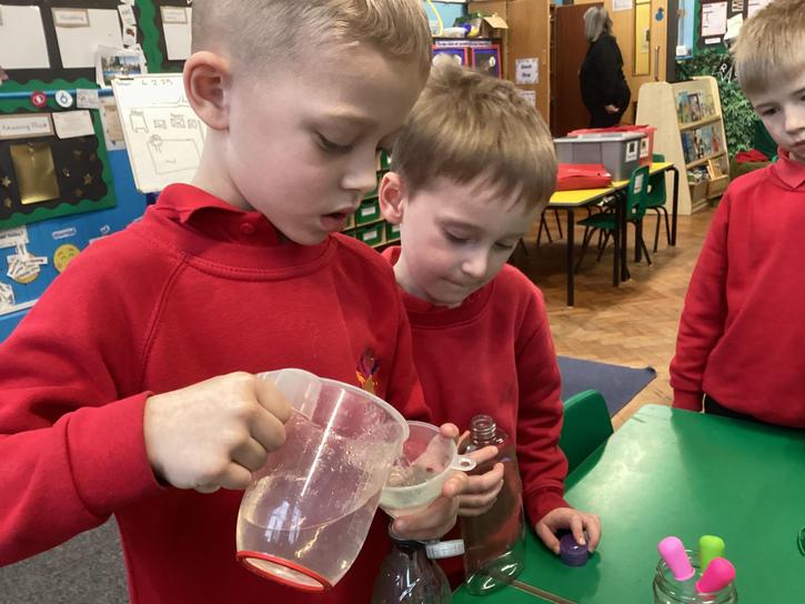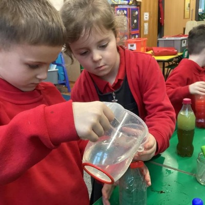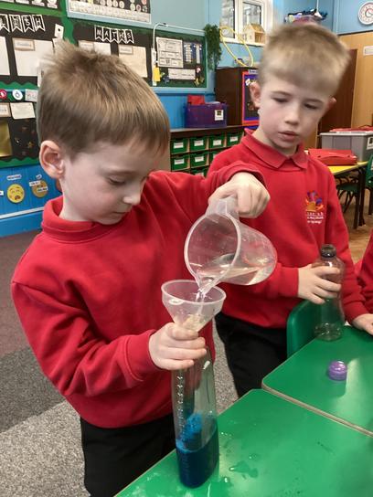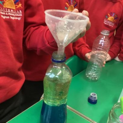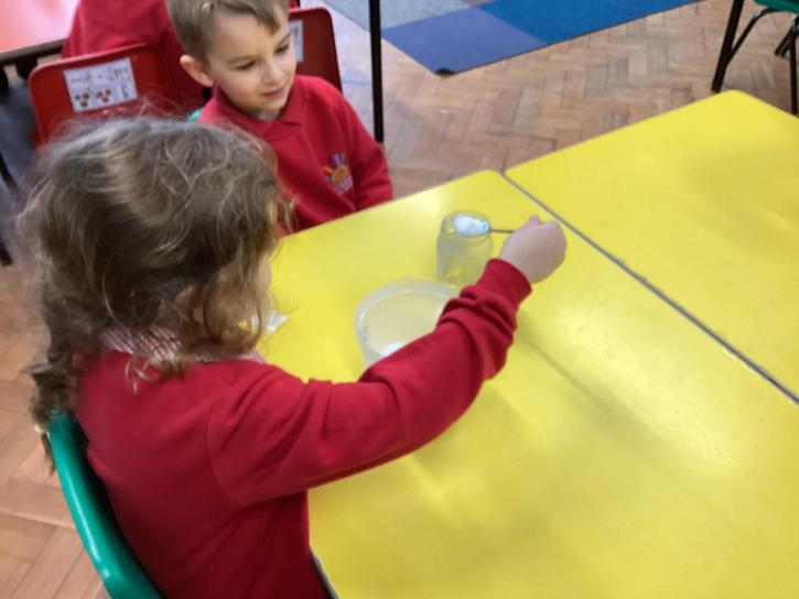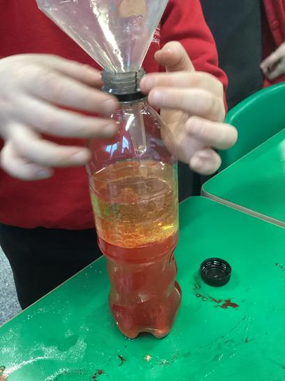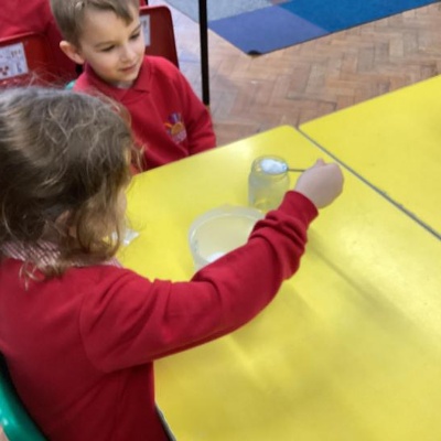 This week we investigated the consistency of different liquids and looked at if they mixed together. We added oil to water and tried to mix together but we observed that the two liquids stayed separated.