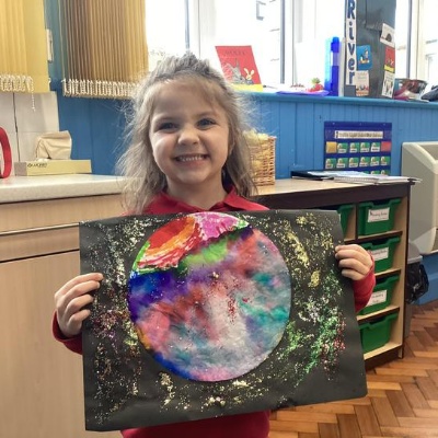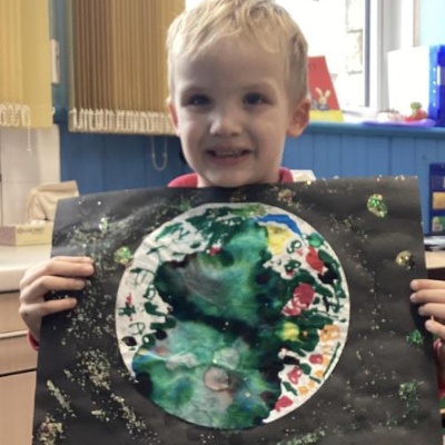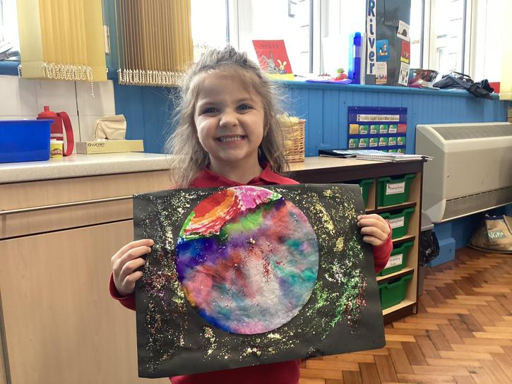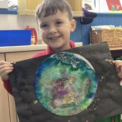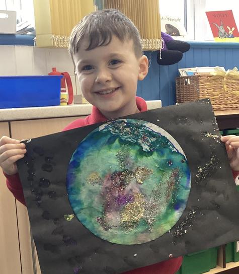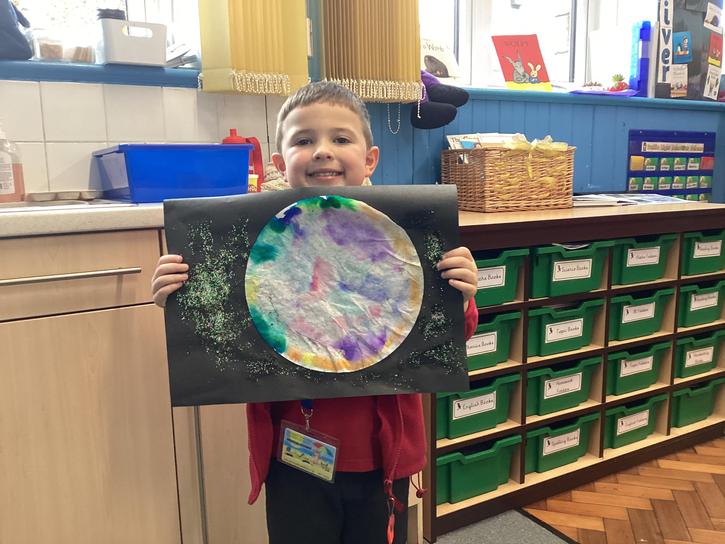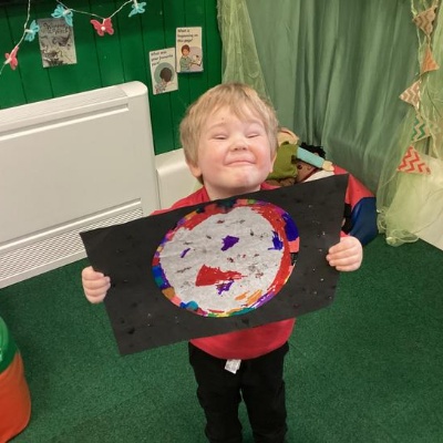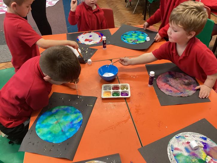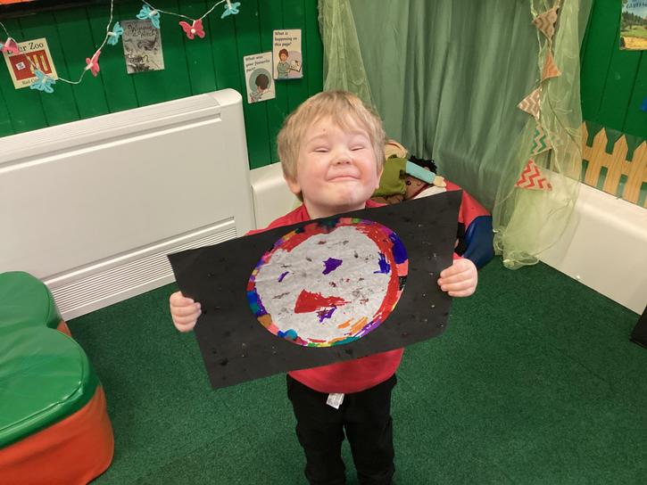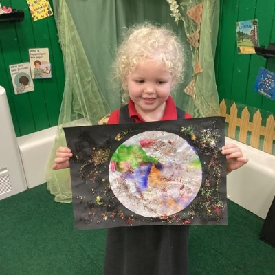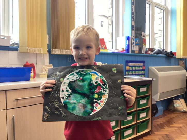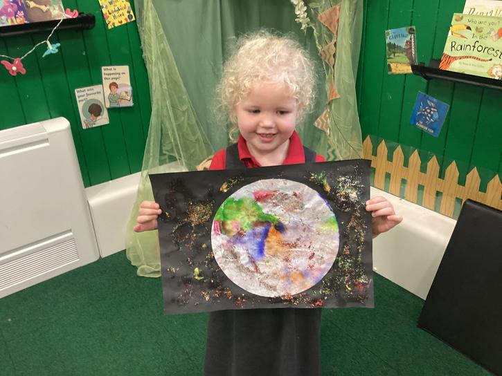 Using the planet backgrounds we created last week we designed our own individual planet.  This involved lots of discussion about various scientific concepts such as gravity and human life or otherwise.