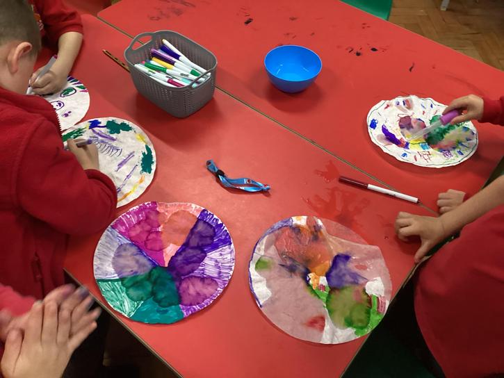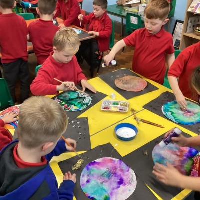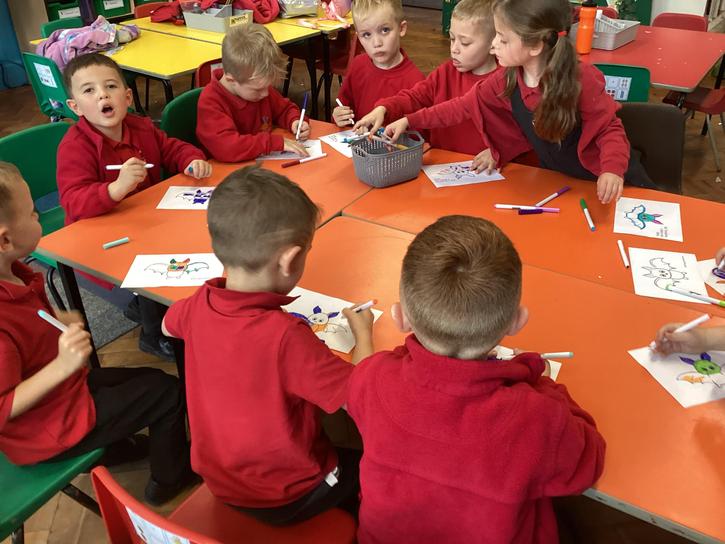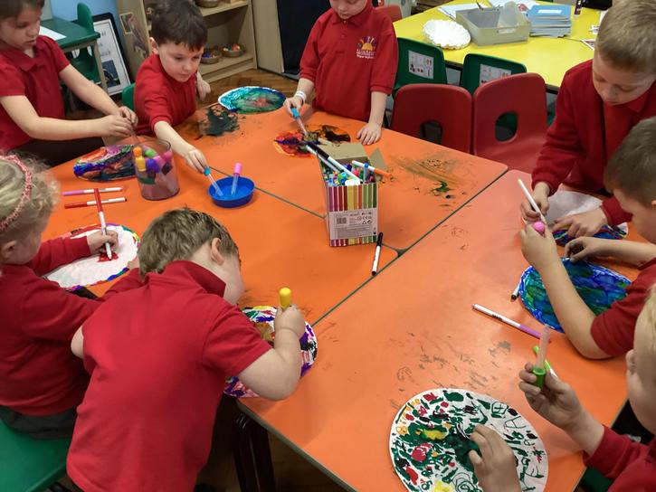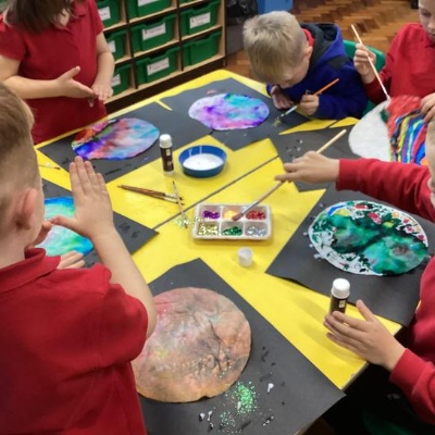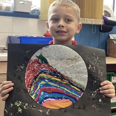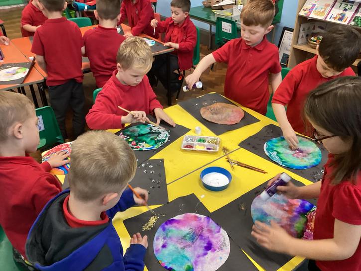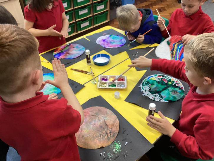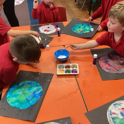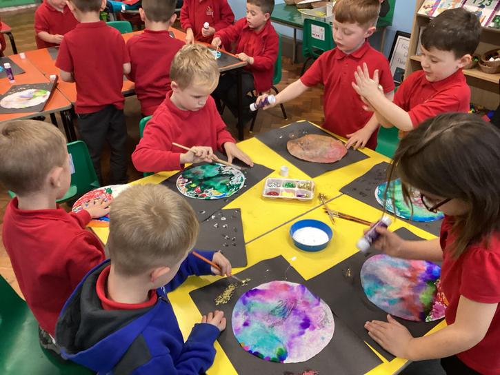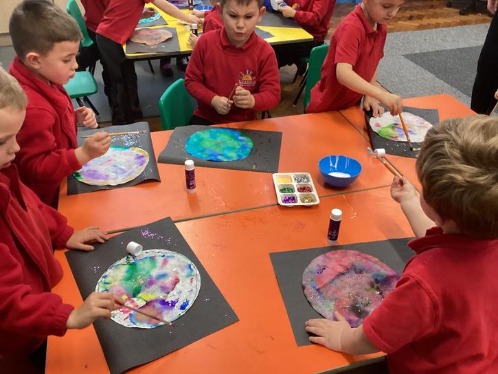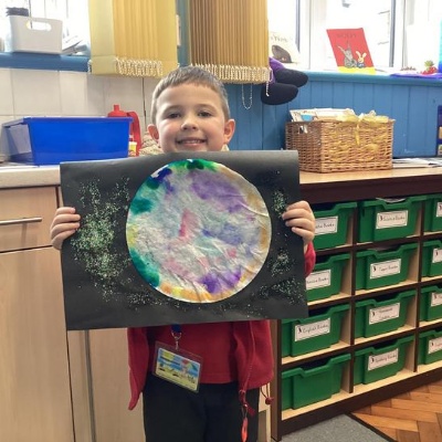Using the planet backgrounds we created last week we designed our own individual planet.  This involved lots of discussion about various scientific concepts such as gravity and human life or otherwise.