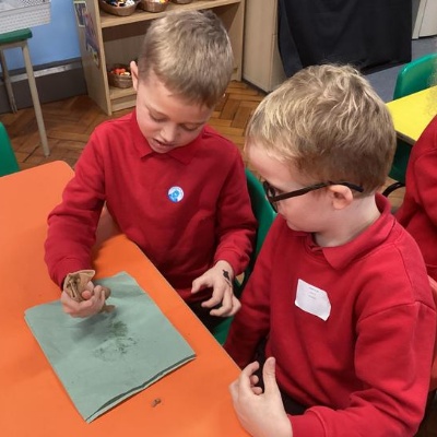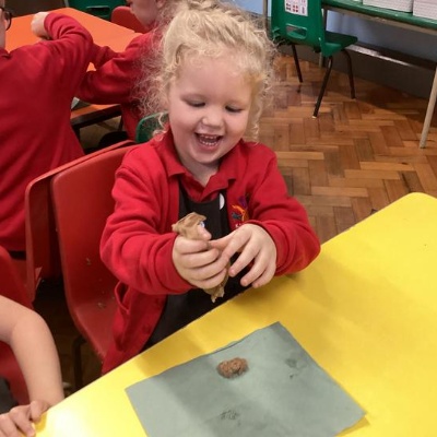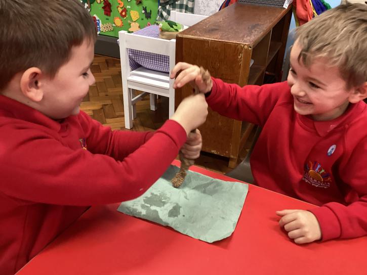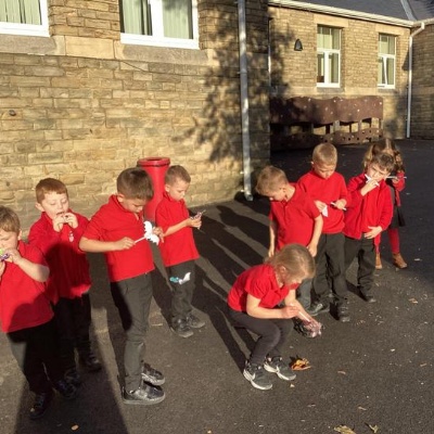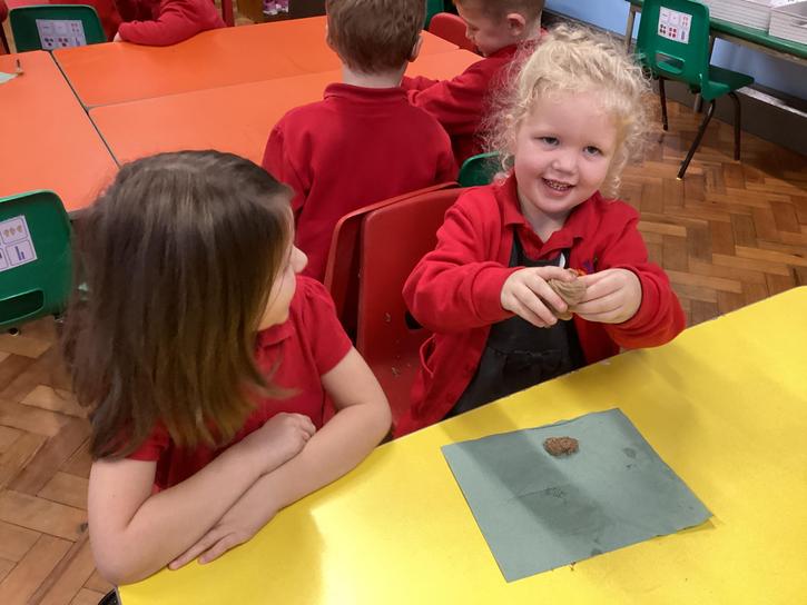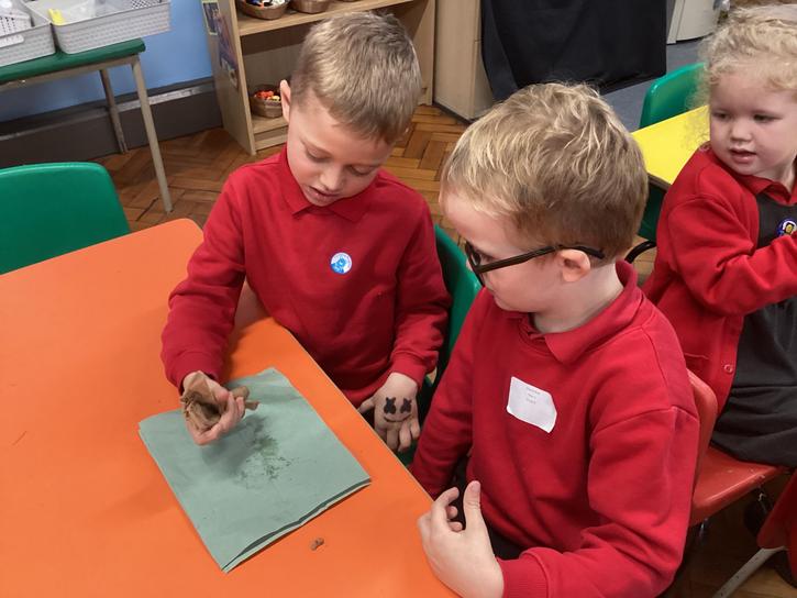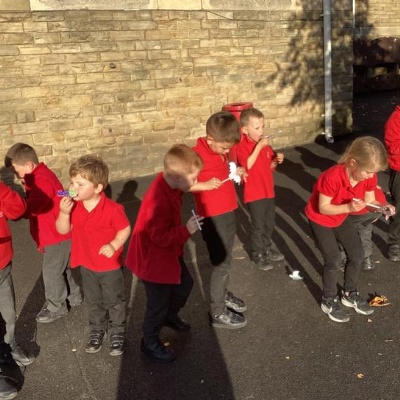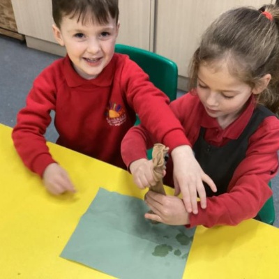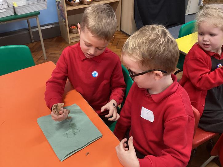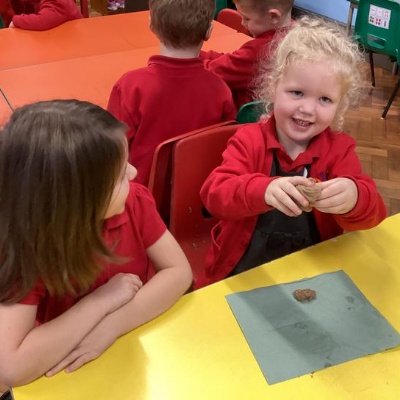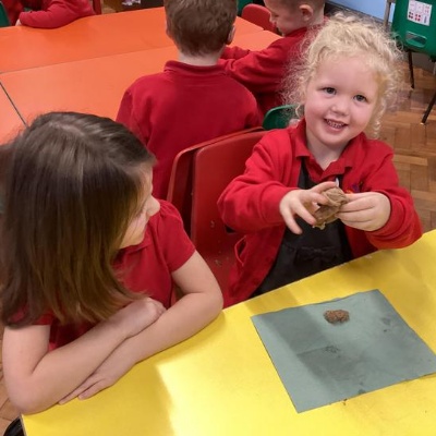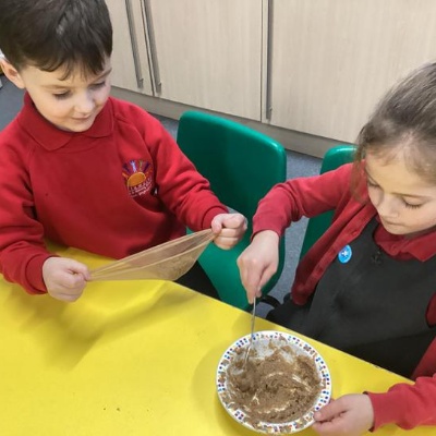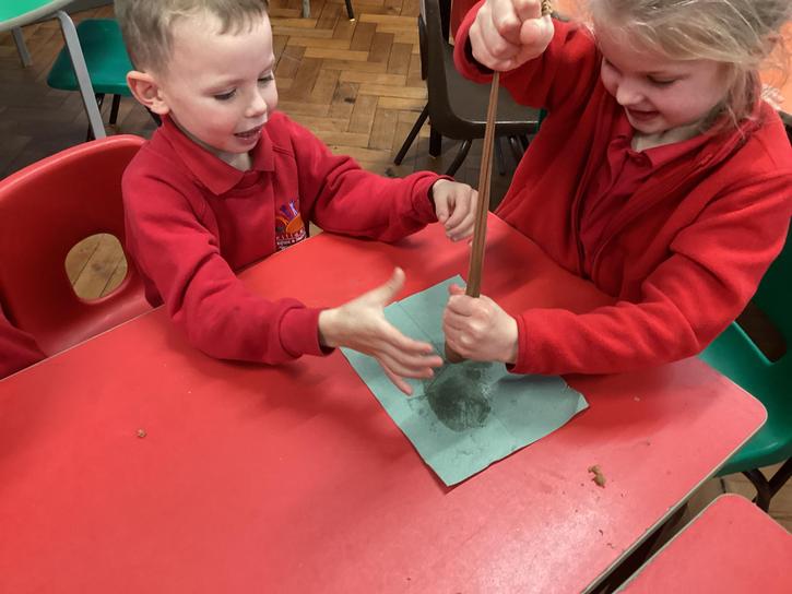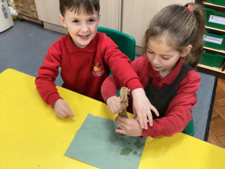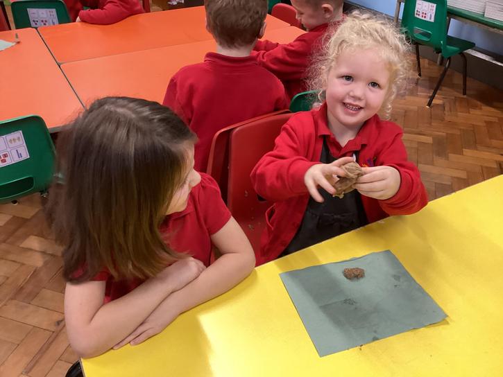 We mashed some Weetabix in a cup and added saliva (water) to break down the food.   We then talked about the food moving down the oesophagus into the stomach.  We mixed in the enzymes (cola) in our stomach to 'digest' it further. We then spooned the mixture into the intestines (tights) and squeezed it through to the end of the intestines and then let nature take it’s course!!!!