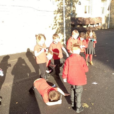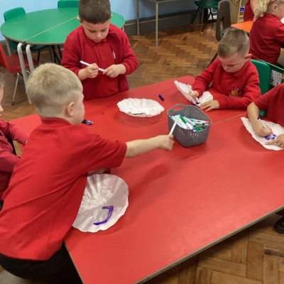 As a Halloween activity we got busy making flying bats.
