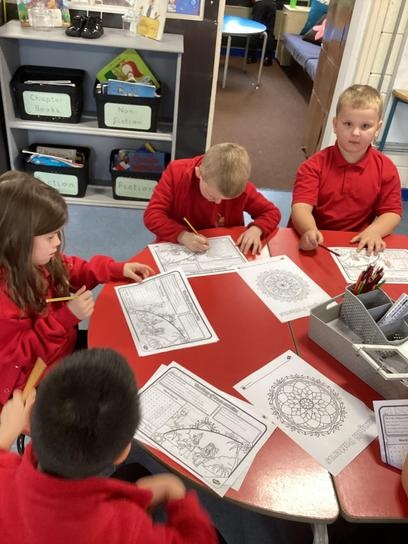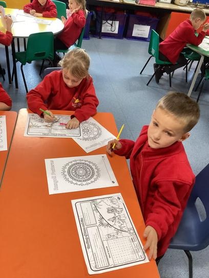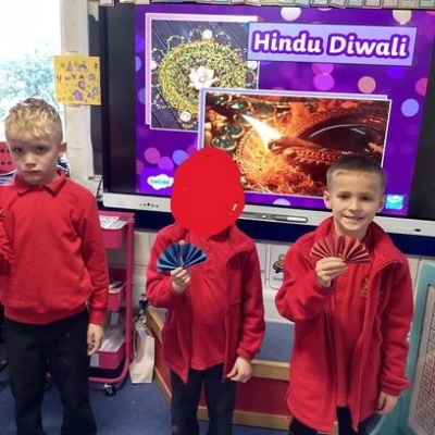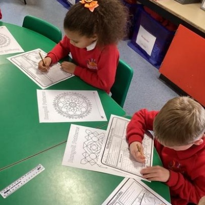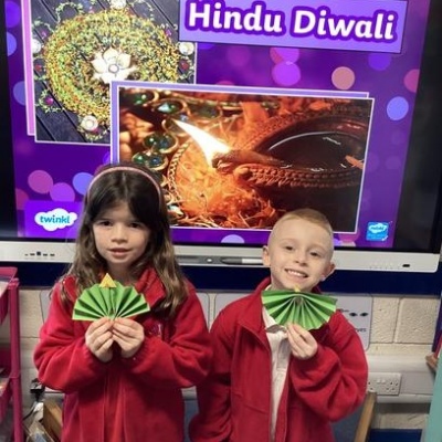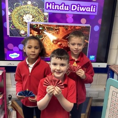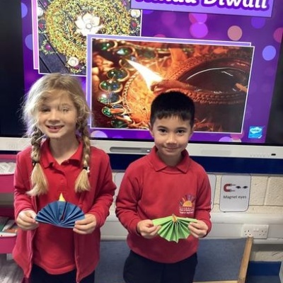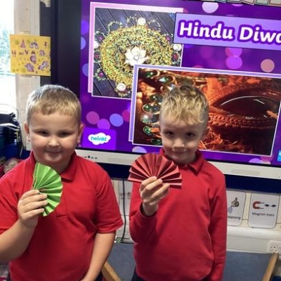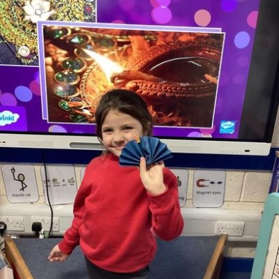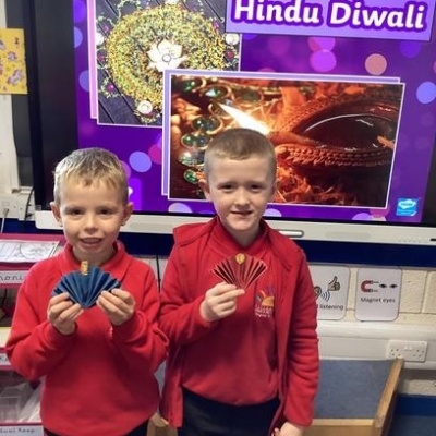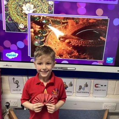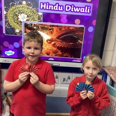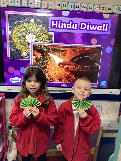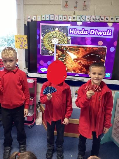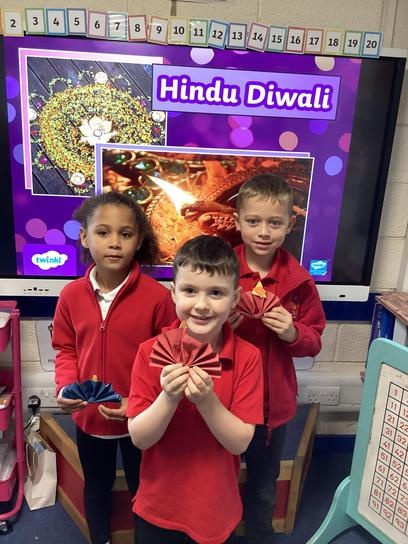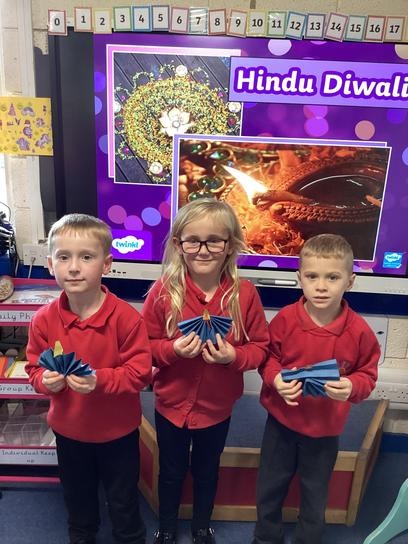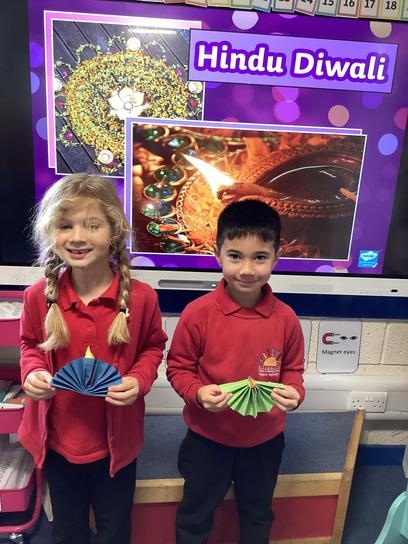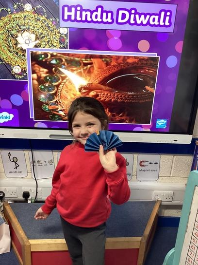 We found out about Diwali. We listened to a story of Rama and Sita, we watched a video about how Hindus celebrate Diwali. We made Divas using card, decorated rangoli patterns and wrote about Rama and Sita.