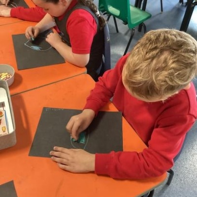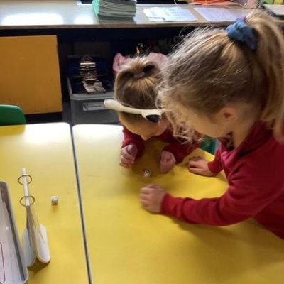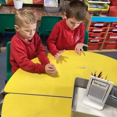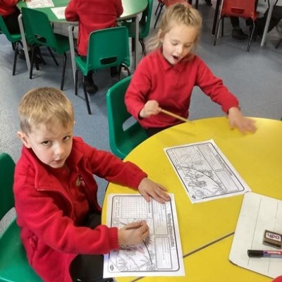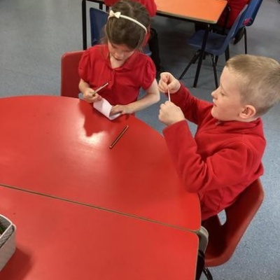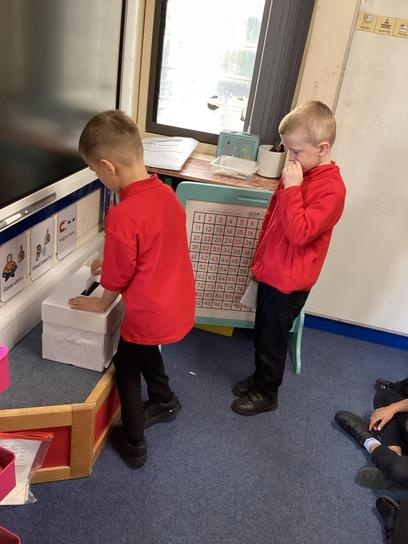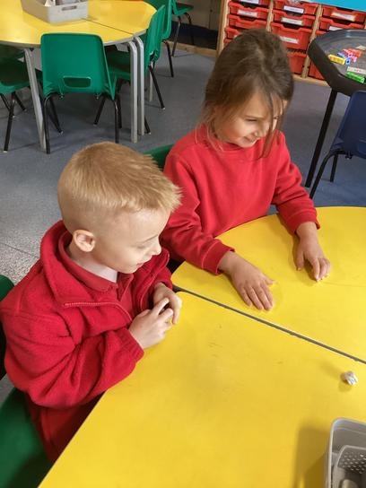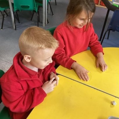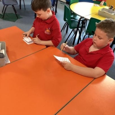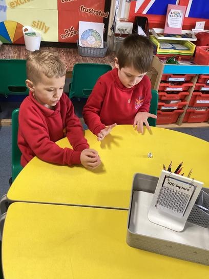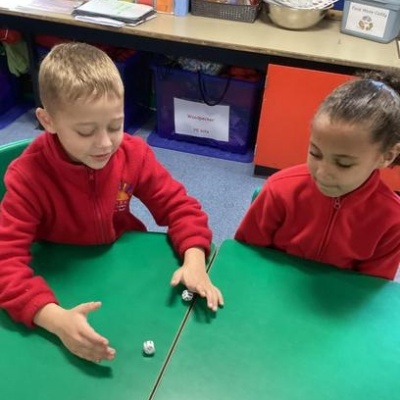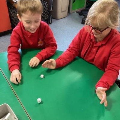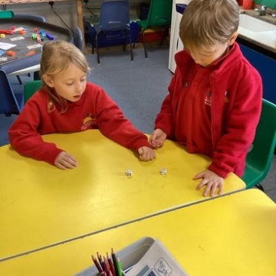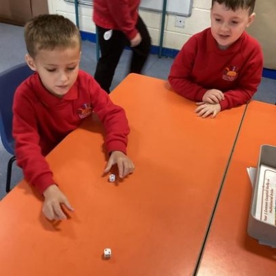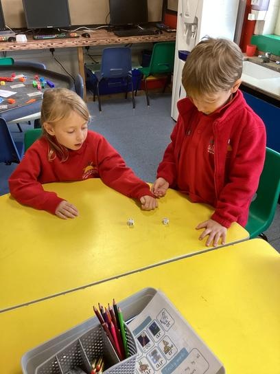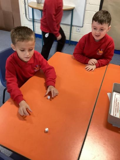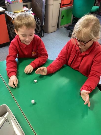 In maths we have been learning about doubles and near doubles. The children worked with a partner and rolled 2 dice. If they rolled a near double they scored one point. The first to 3 points was the winner.