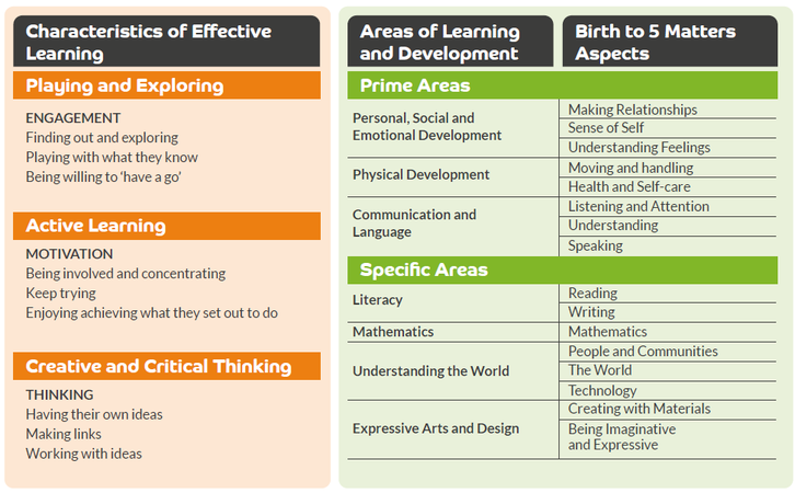 The Characteristics of Effective Learning and the 7 Areas of Learning help to shape our curriculum throughout Nursery and Reception.